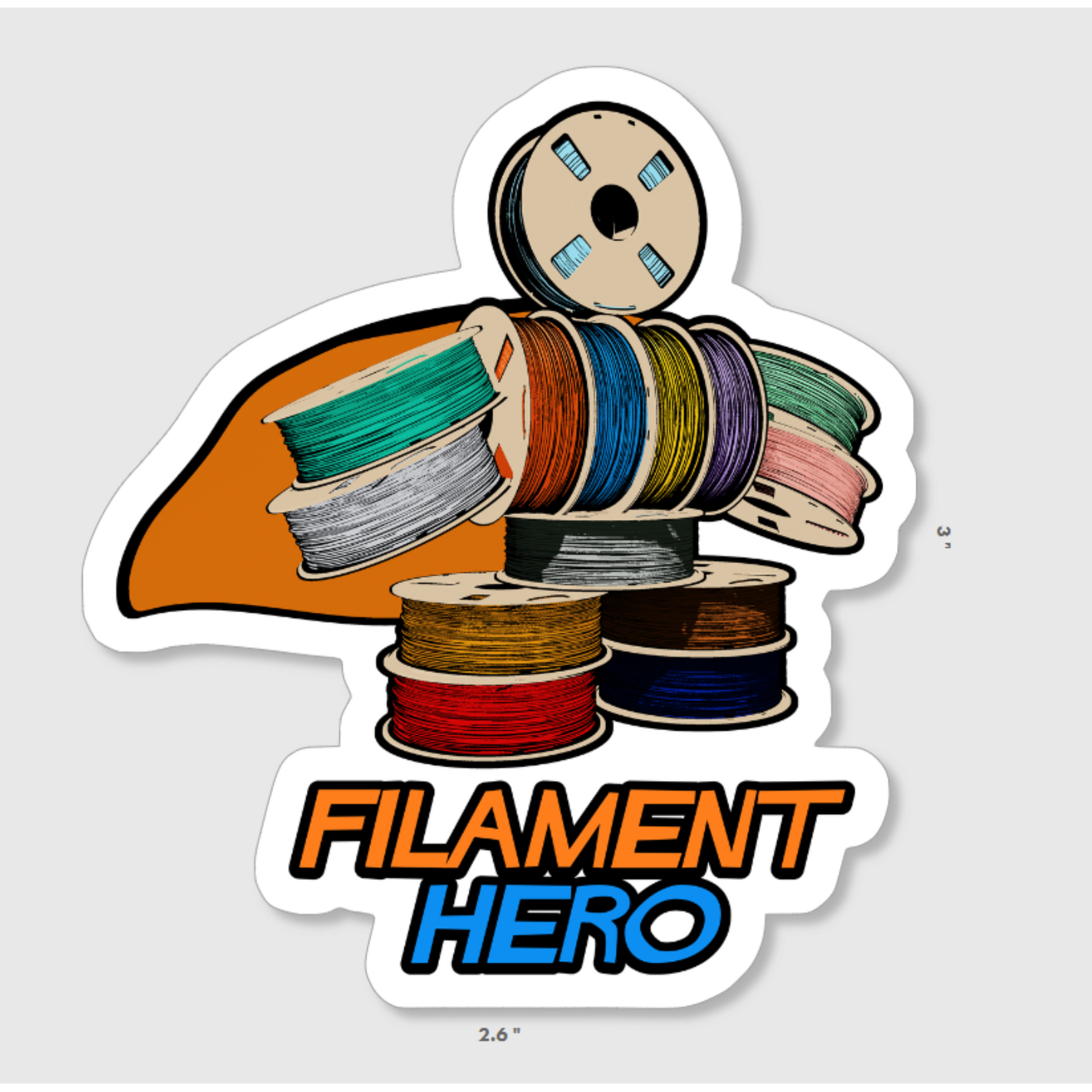 Show off your 3D printing superpowers with this fun Filament Hero Sticker! Featuring a stack of colorful filament spools and a bold superhero design, this high-quality vinyl sticker is perfect for any maker who lives and breathes 3D printing. Stick it on your laptop, water bottle, or anywhere you want to showcase your passion.