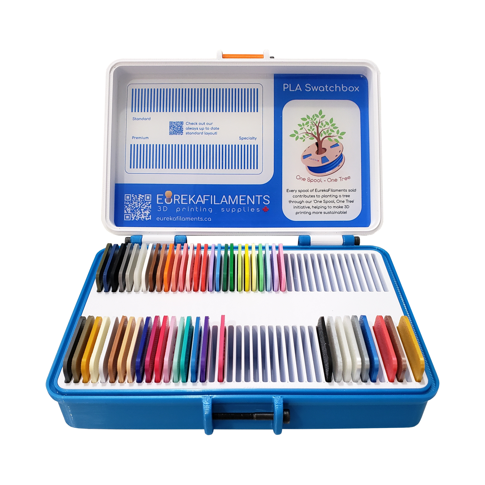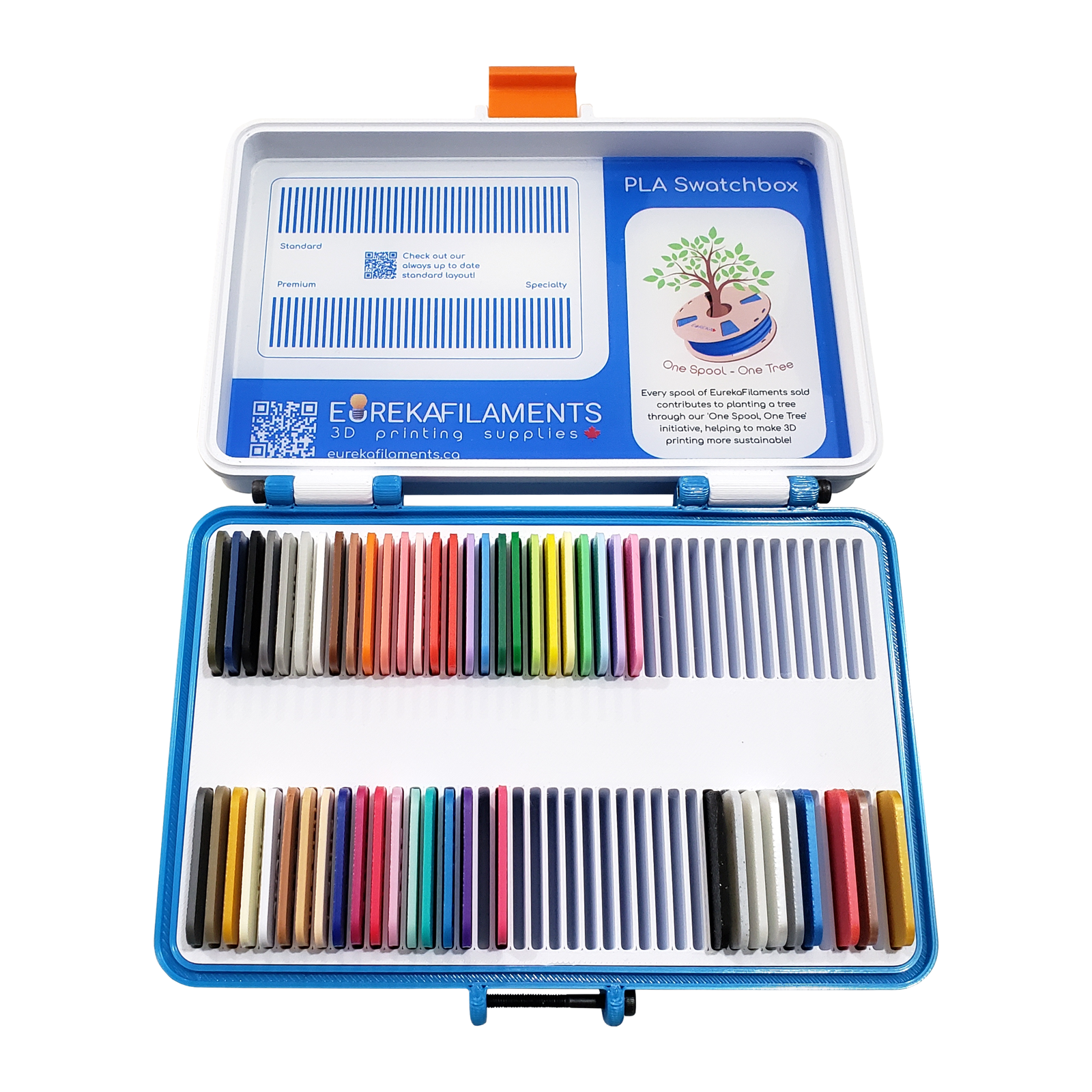 Get hands-on with our complete color collection before making your next purchase. The Eureka Filaments Swatch Box features high-quality samples of all our vibrant and unique filament colors, giving you the confidence to choose the perfect shade for your project.